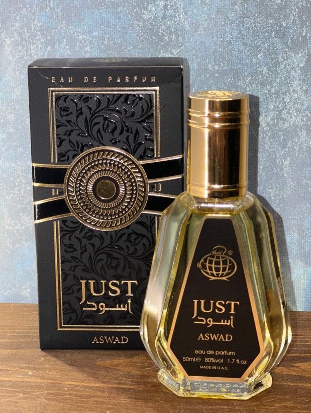 ادکلن 50 میل فراگرنس ورد مدل جاست اسود just aswad رایحه ادکلن اسد