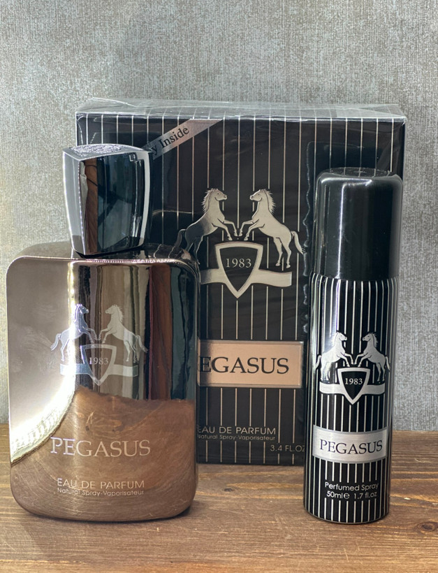 عطر ادکلن مردانه پرفیوم دو مارلی پگاسوس فرگرنس ورد (Fragrance World Pegasus) رایحه گرم ، تلخ و کمی شیرین و تند . این محصول نمونه شرکتی ادکلن مارلی پگاسوس اورجینال Parfums de Marly Pegasus می باشد.